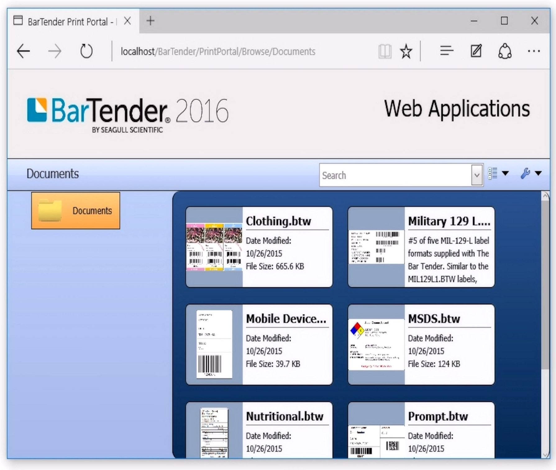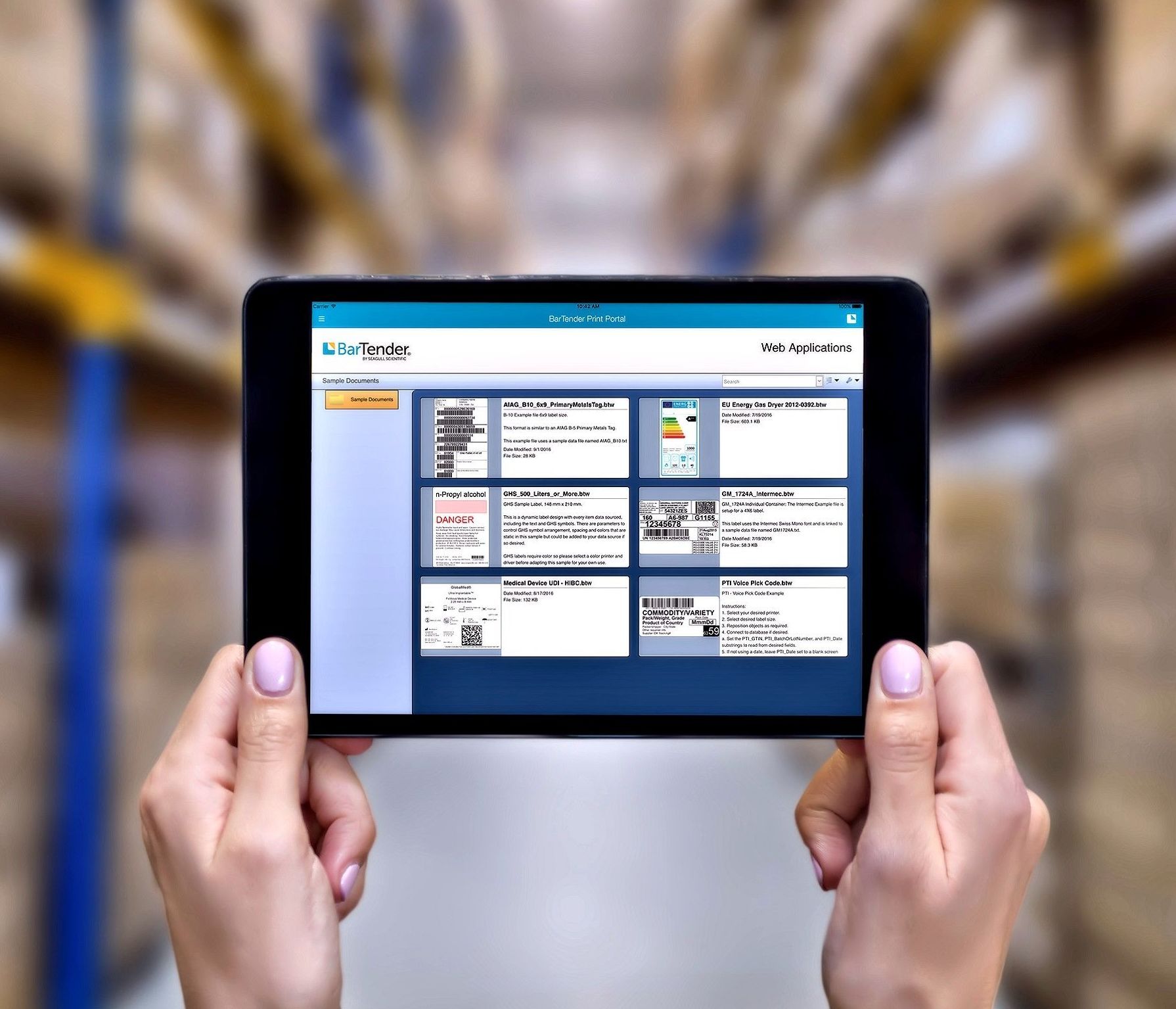 BarTender Print Portal permite imprimir, monitorizar y gestionar con un solo clic desde cualquier dispositivo con un navegador, incluyendo tablets y smartphones.